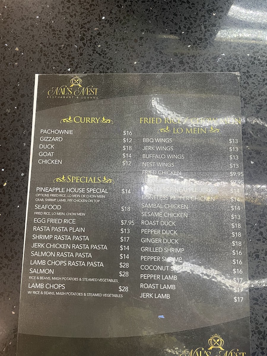 At Nals Nest, the menu offers a welcoming mix of hearty Caribbean comfort foods alongside vibrant, flavorful dishes that invite relaxed, easy-going meals. The selection leans toward casual dining with a focus on bold, familiar spices and a variety of traditional favorites. You’ll find everything from satisfying fried rice varieties, like the Pineapple House Special Fried Rice and Jerk Chicken Fried Rice, to rich stews and soups such as Curry Goat and Cowheel Soup.