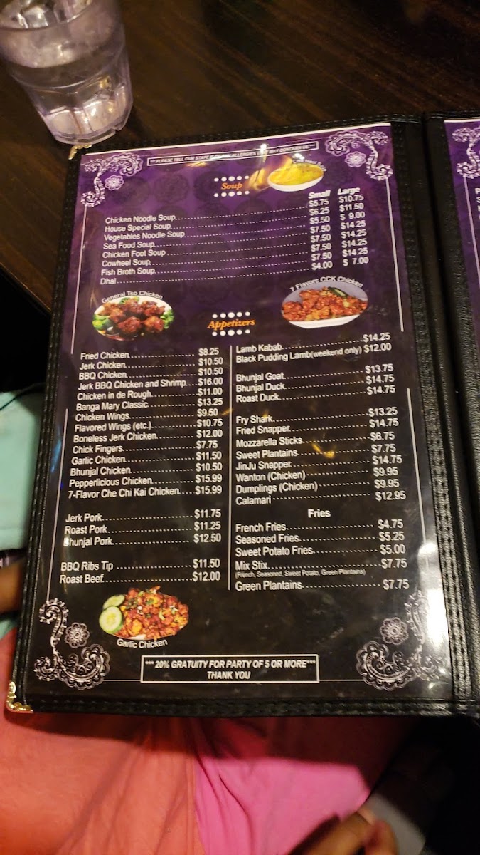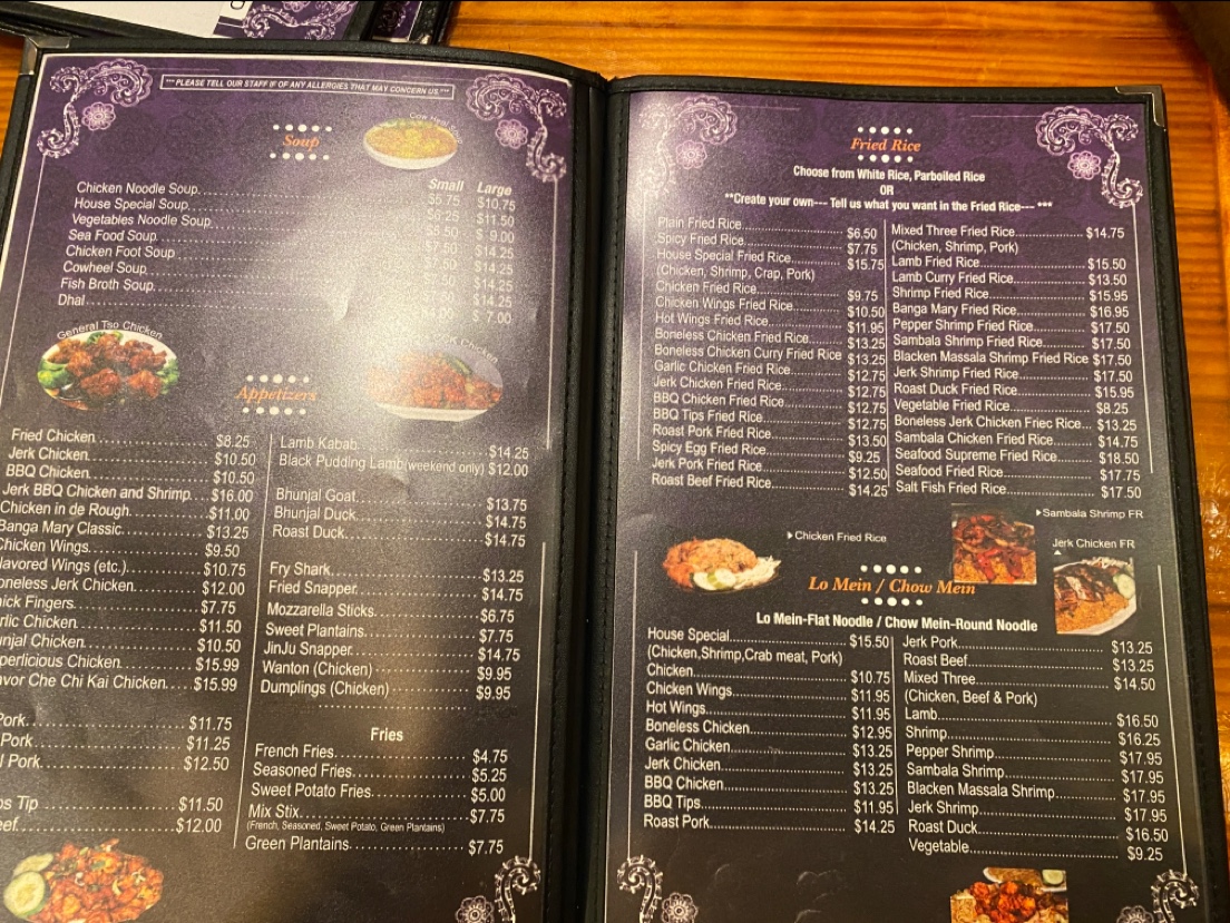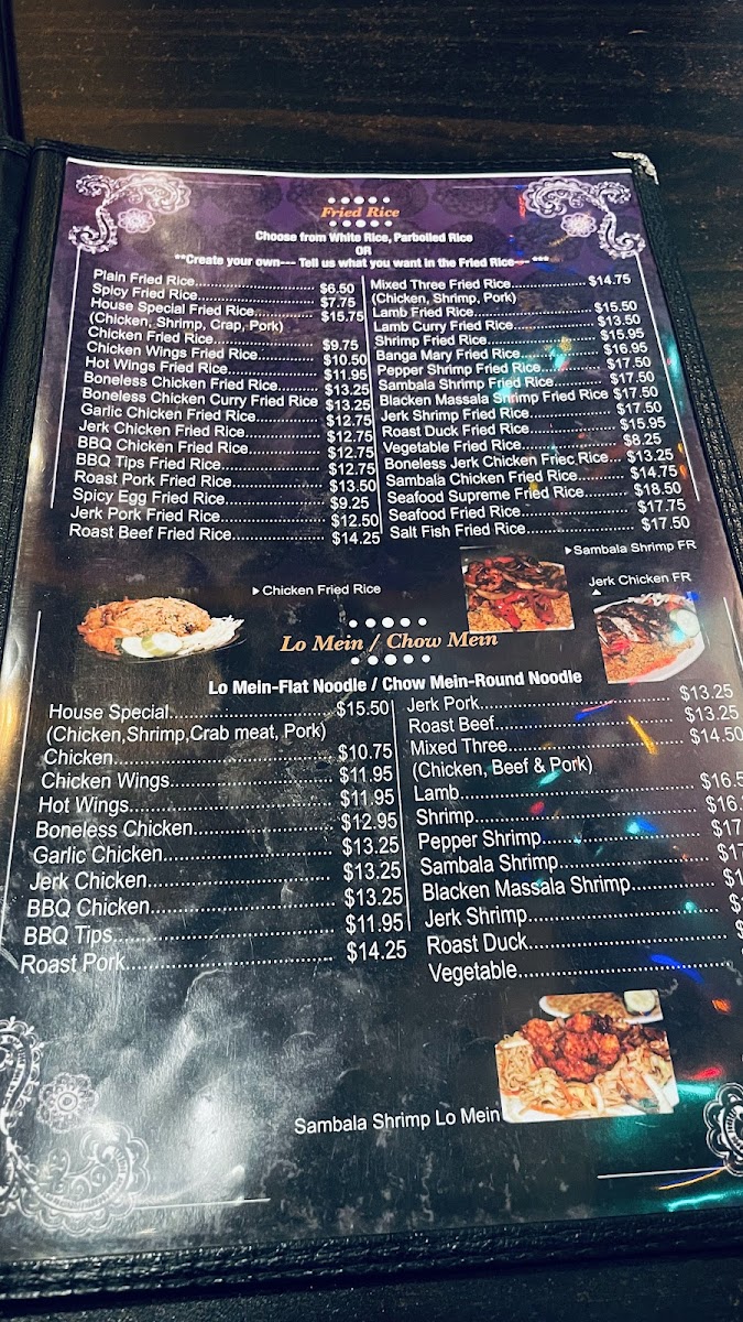 This is a place where you can comfortably enjoy a flavorful lunch or settle in for a laid-back dinner with friends or family, sharing plates like Boneless Pepper Chicken Fried Rice or the House Special Lo Mein. The menu also complements the lively atmosphere with a thoughtful range of drinks — from refreshing Rum Punch and Piña Colada to Carib Beer and a jalapeño-infused margarita — perfect for unwinding alongside the warm, inviting vibes of the space.